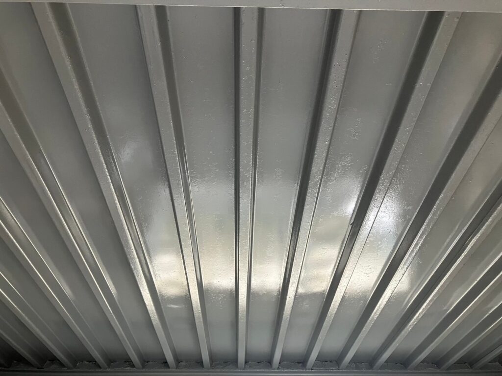 大屋根・倉庫軒天は鉄部だったため、下処理をしっかりと行ってから塗装しております。