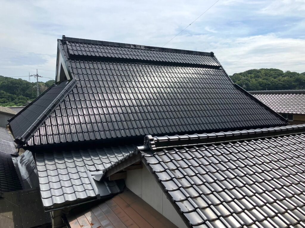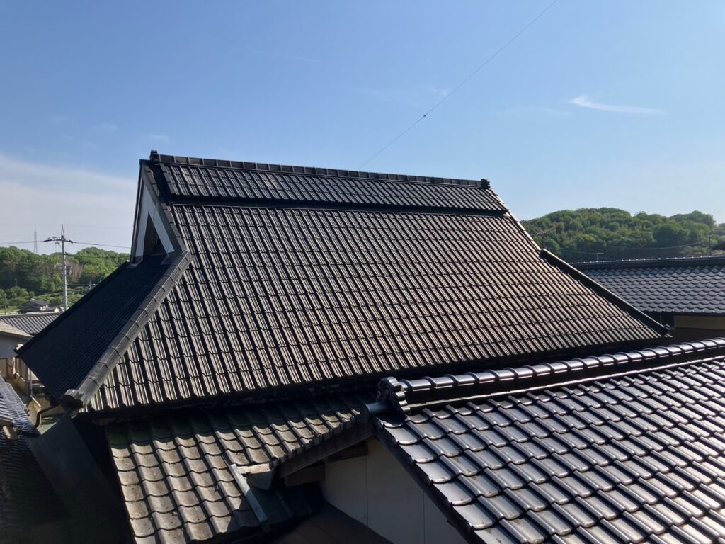 岡山県倉敷市の個人住宅屋根塗装 |重厚感のある入母屋造の屋根